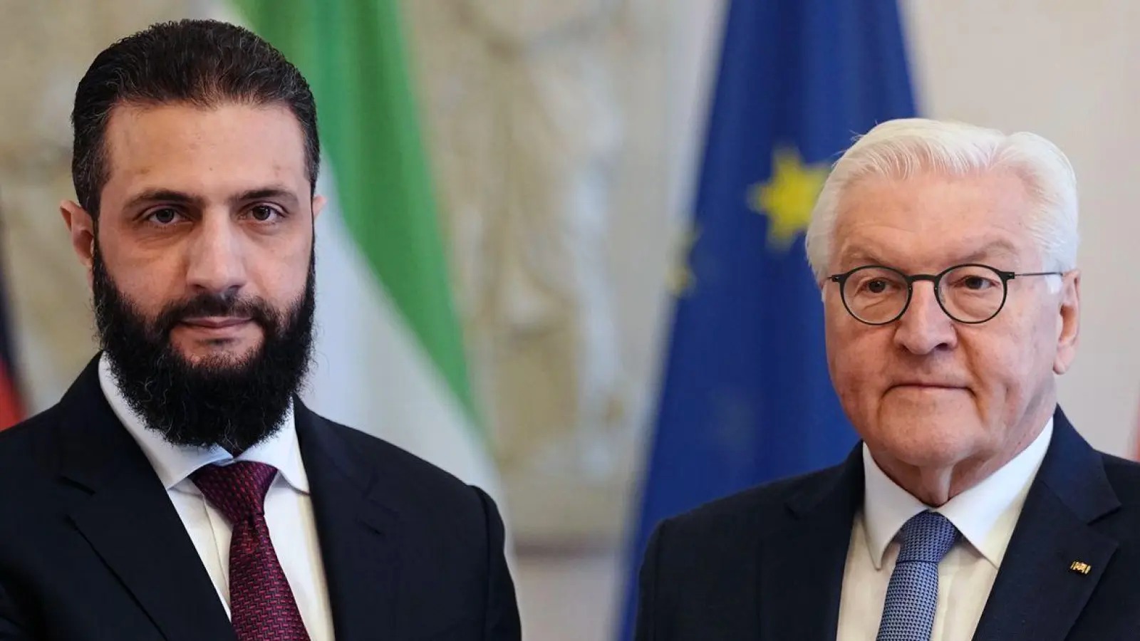BERLİN – Suriye’de 2024 yılı sonunda Esad rejiminin devrilmesinin ardından göreve gelen geçici devlet başkanı Ahmed eş-Şara, Batı ile ilişkileri normalleştirme çabaları kapsamında Berlin’e resmi bir ziyaret gerçekleştiriyor. Ocak ayında Suriye’de yaşanan şiddet olayları nedeniyle ertelenen kritik ziyaret, bugün Bellevue Sarayı’nda başladı.