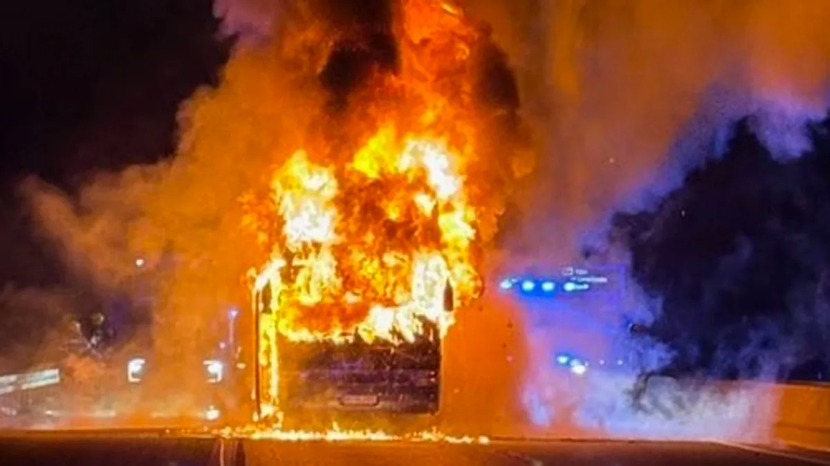 Ratingen- Ratingen yakınlarında A52 otoyolunda, Breitscheider Kreuz kavşağı civarında bir tur otobüsü cuma sabahı henüz bilinmeyen bir nedenle yanmaya başladı. Kısa sürede büyüyen alevler nedeniyle otobüs tamamen kullanılamaz hale geldi.